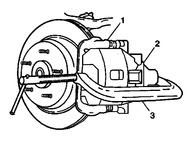 5. Compress the caliper piston enough for clearance. Use a C-clamp (3).