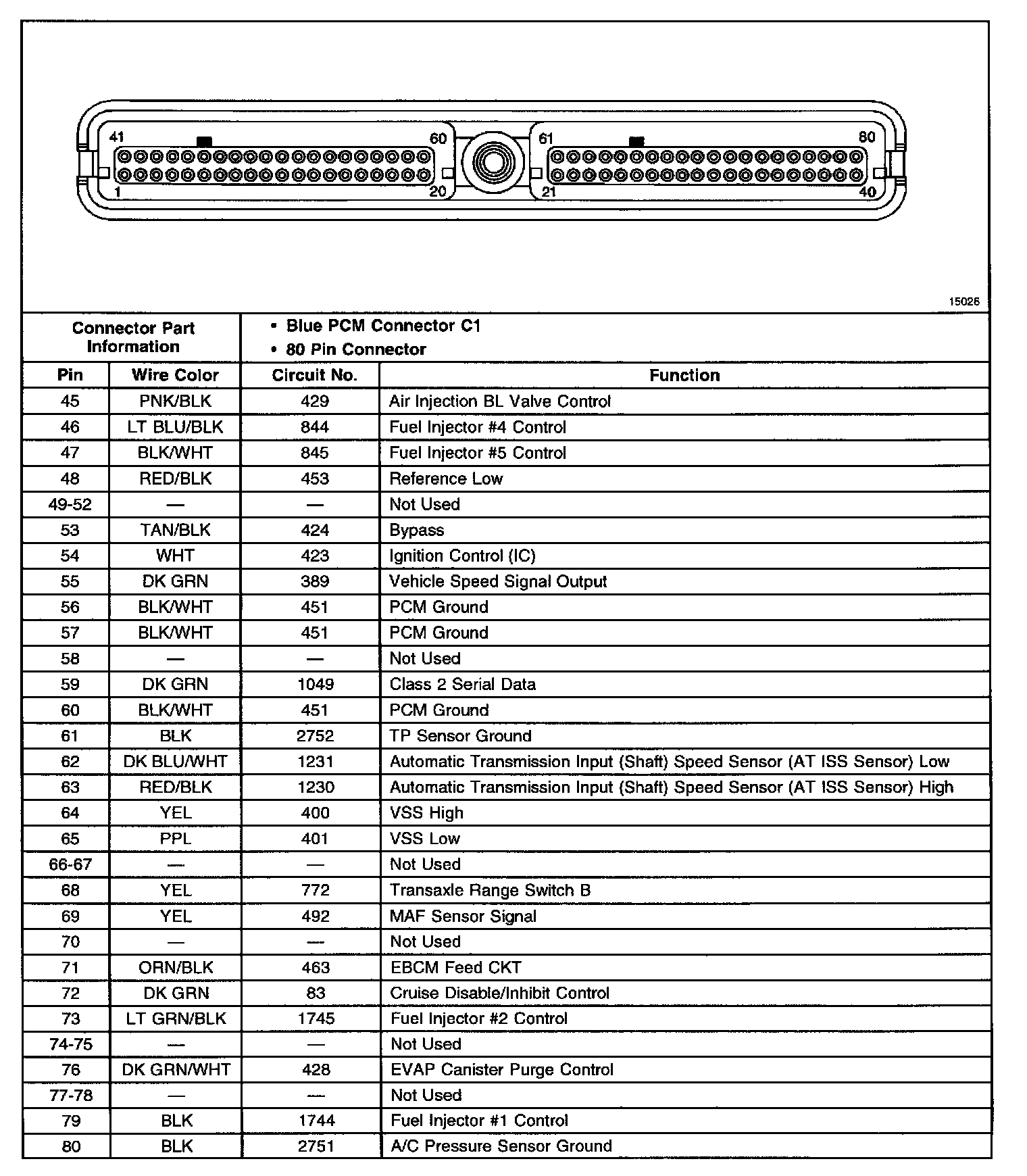 Powertrain Control Module Connector C1 End View (Part 2 Of 2):