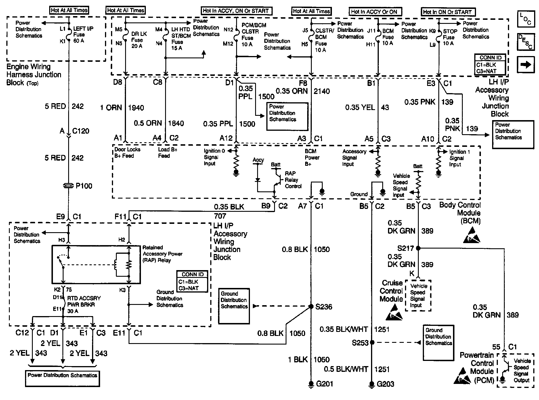 Body Control Module Schematics: Power, Grounds and RAP Relay: