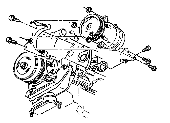 15. Install the AC compressor bracket bolts. Refer to Compressor Replacement in Heating and Air Conditioning.