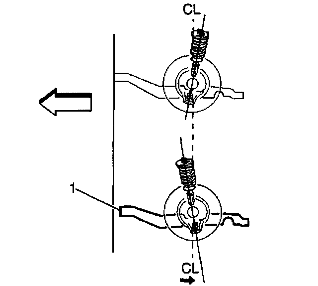Setback applies to both the front and the rear wheels. Setback is the amount that one wheel spindle may be aligned behind the other wheel spindle. In the illustration, the left side frame (1) is moved toward the rear, causing a misalignment. Setback may be the result of a road hazard or a collision. The first clue is a caster difference from side-to-side of more than one degree.
