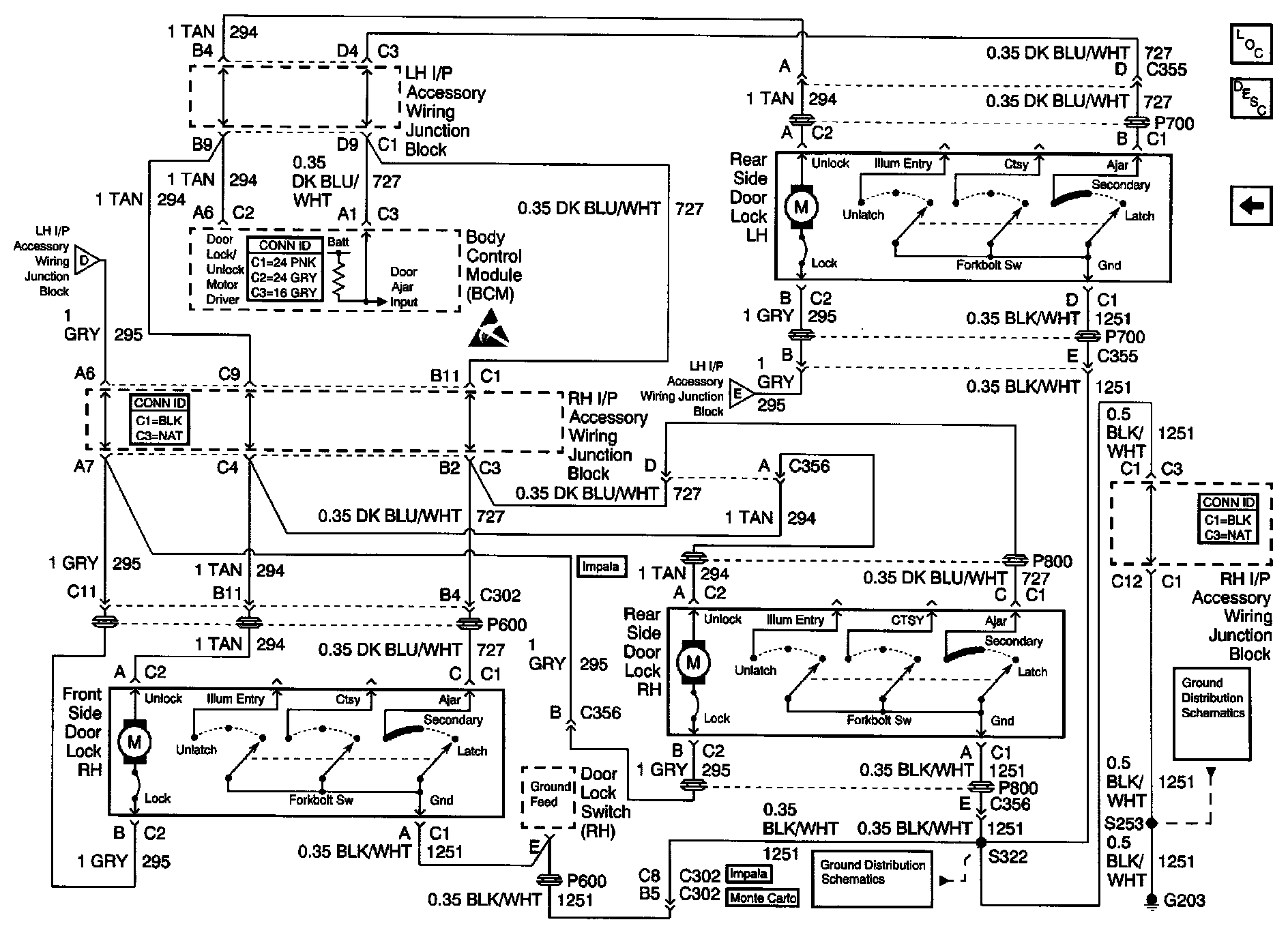 Body Control Module Schematics: RF And Rear Door Lock Assemblys: