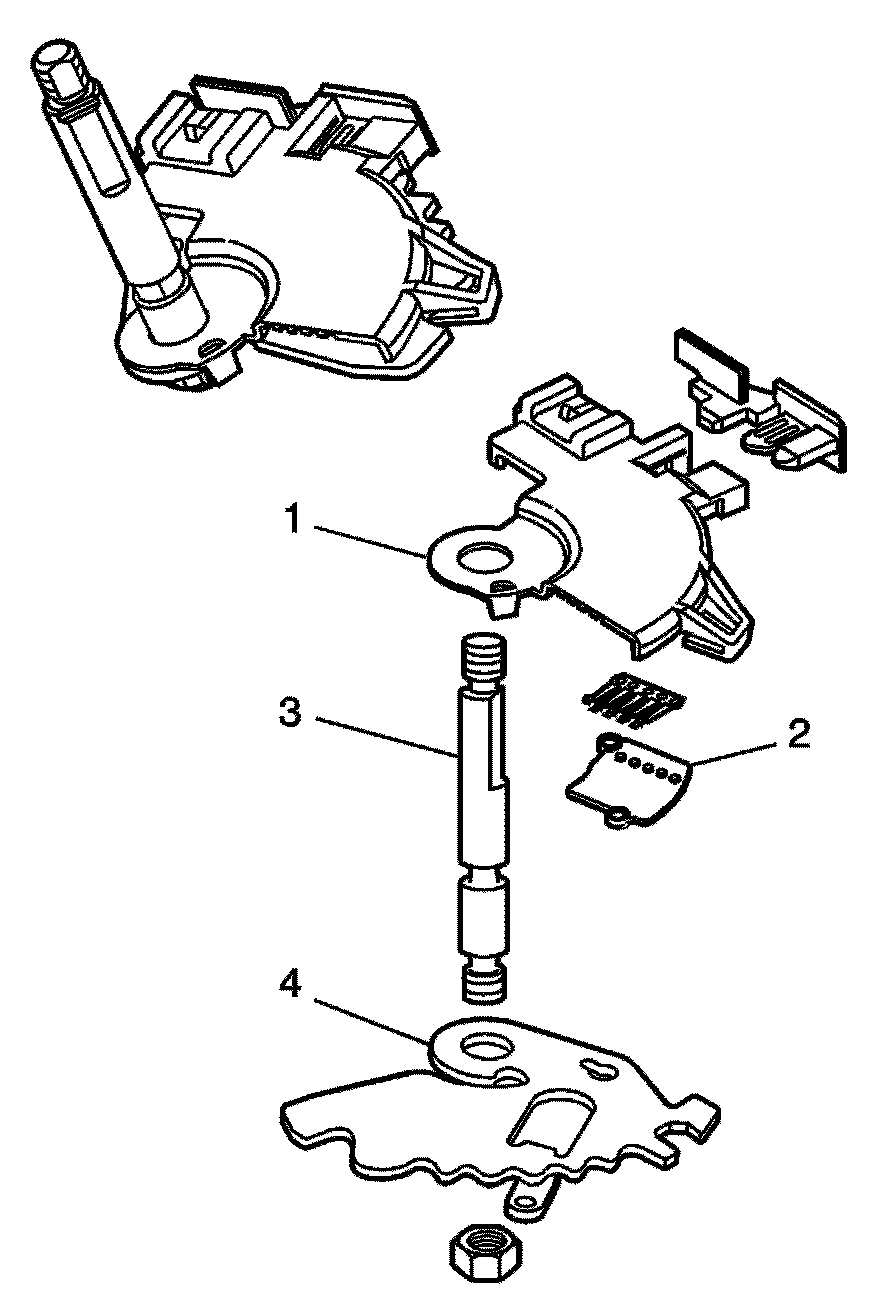 The lever assembly-manual shaft detent with internal mode switch (IMS) is a sliding contact electrical switch assembly that corresponds to the PRNDL position selected. Each of the PRNDL positions has a unique ground pattern on four wires from the PCM.
