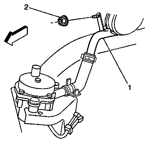 12. Remove the nut (2) from the air injection pipe (1) if applicable if applicable.