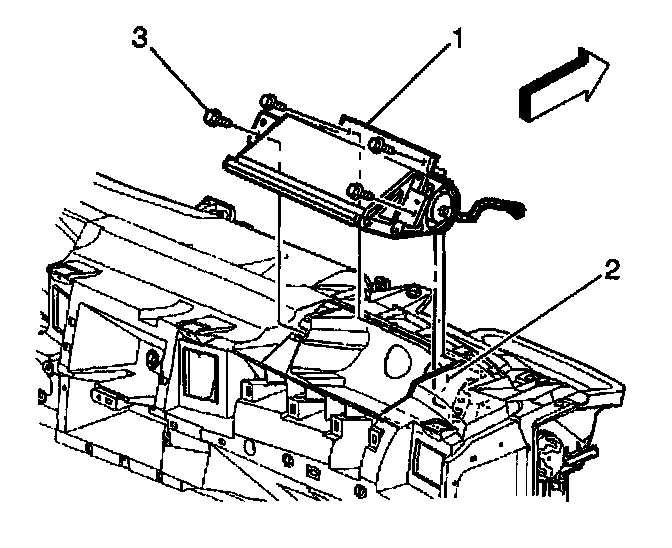2. Install the inflatable restraint IP module mounting fasteners (3).