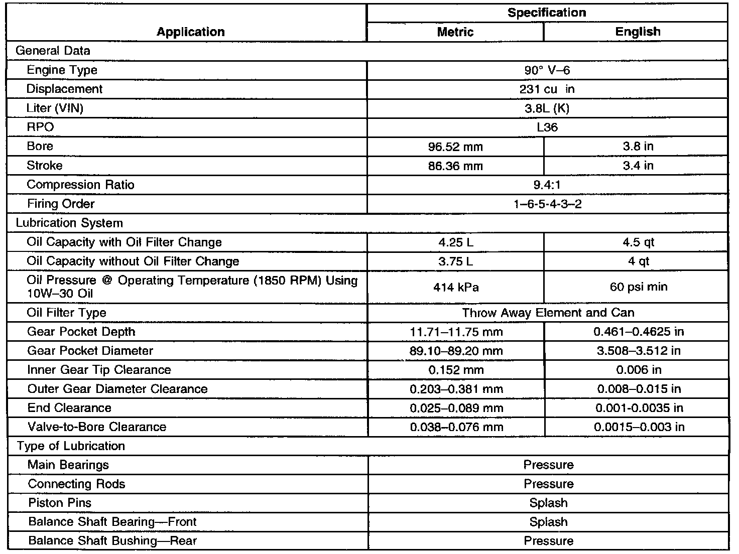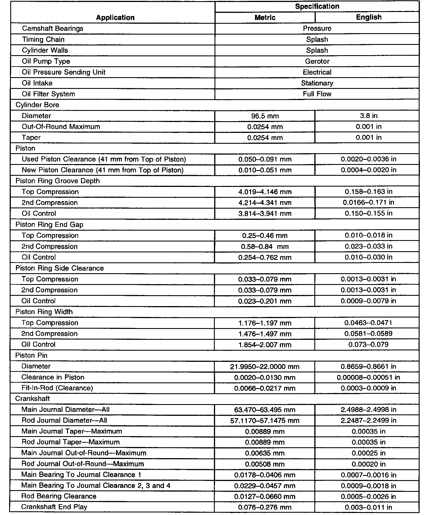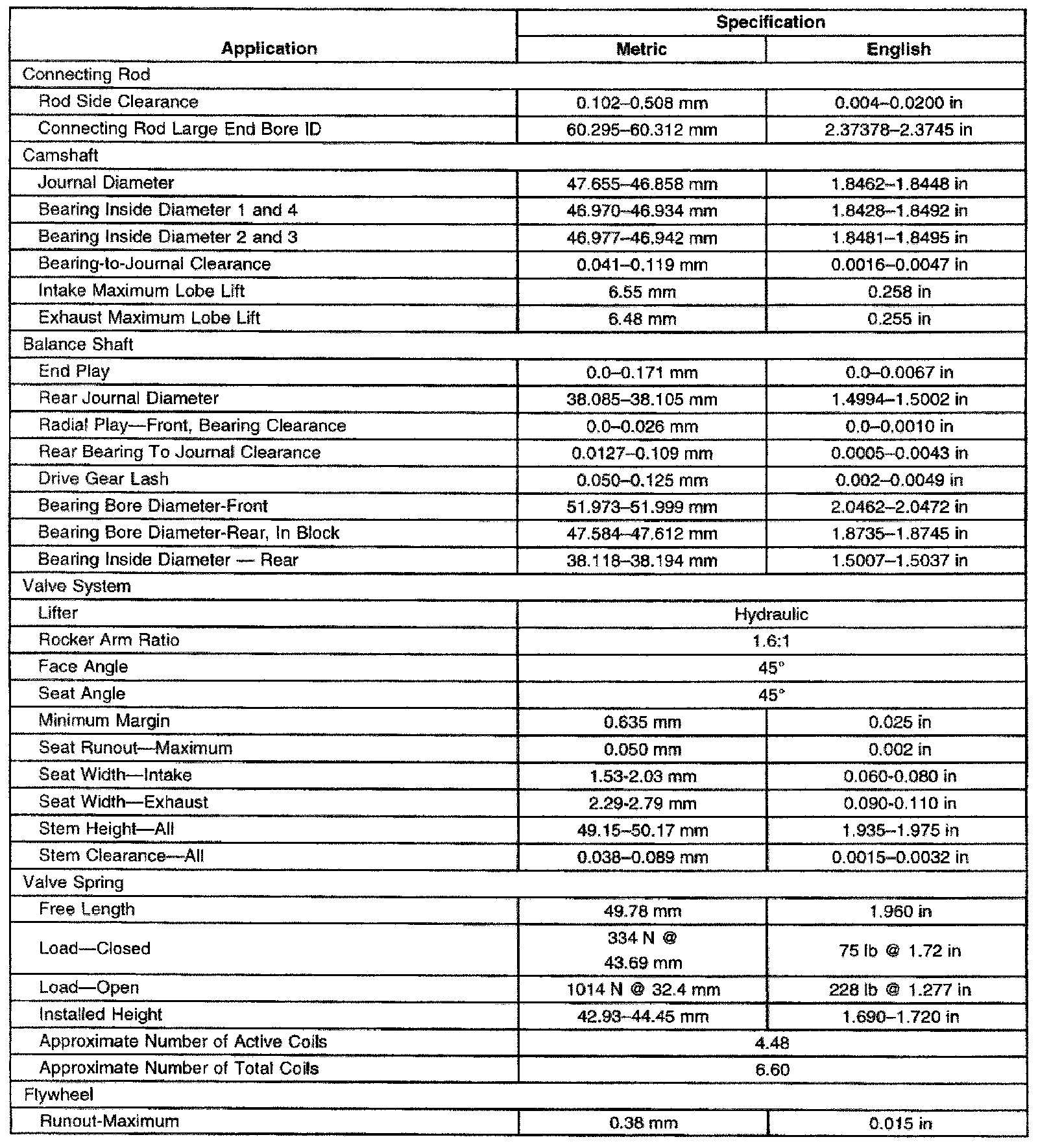 Engine Mechanical Specifications