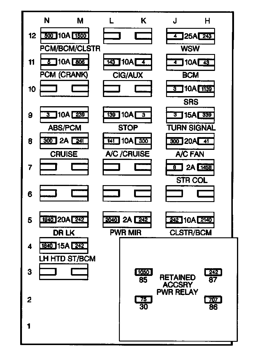 LH Instrument Panel Fuse Block, Top View