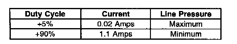 TCC duty cycle for ECCC equipped vehicles is 22 percent for minimum apply pressure and 43 percent for maximum apply pressure. The TCC PWM solenoid valve will typically be 40-60 percent at full apply. Your results may vary.