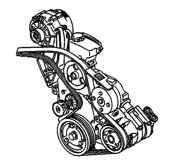 Important: Ensure that the drive belt is aligned into the proper grooves of the accessory drive belt pulleys.
