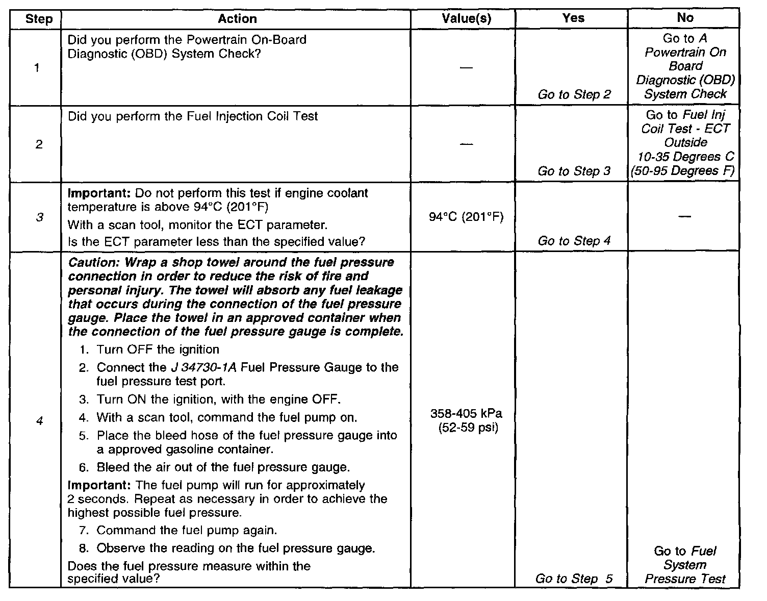 4. Tests the ability to achieve a specified fuel pressure range.