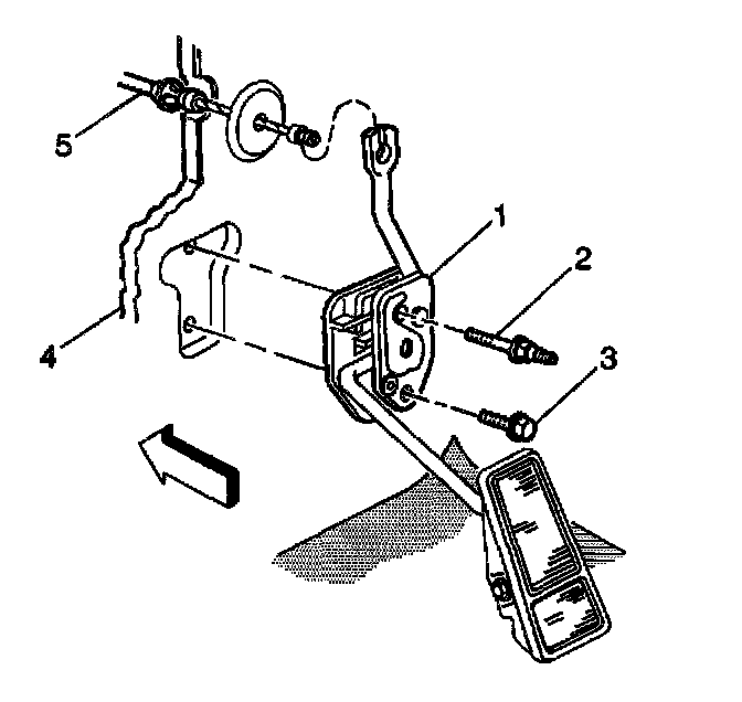2. Reinstall the accelerator pedal bolt (3) and stud (2).