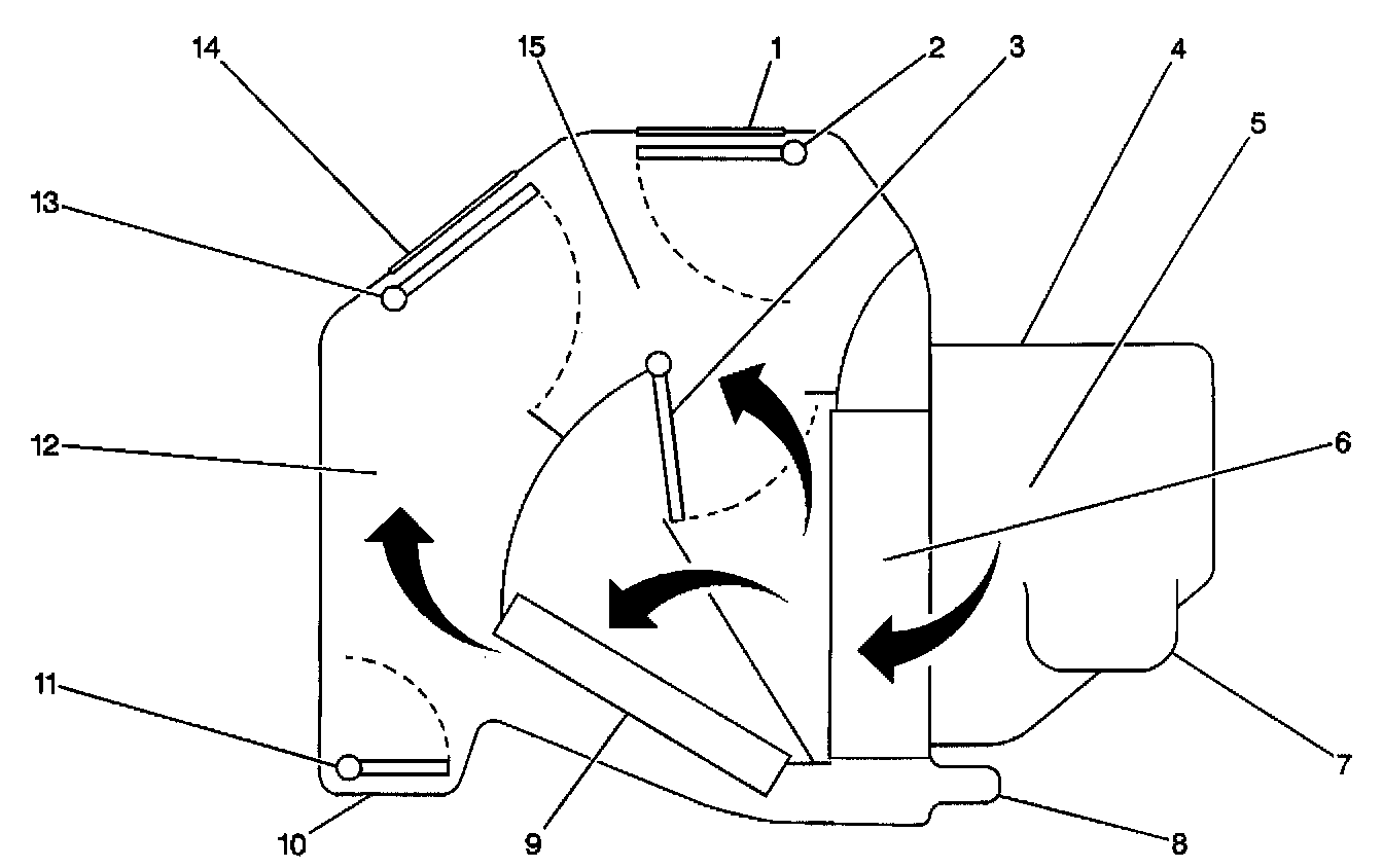 3. The air is directed to one of the following outlets, depending upon the position of the defrost and heat valves: