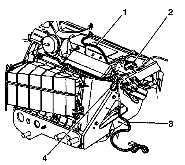 5. Install the wiring harness clips (3) to the HVAC module assembly bracket.