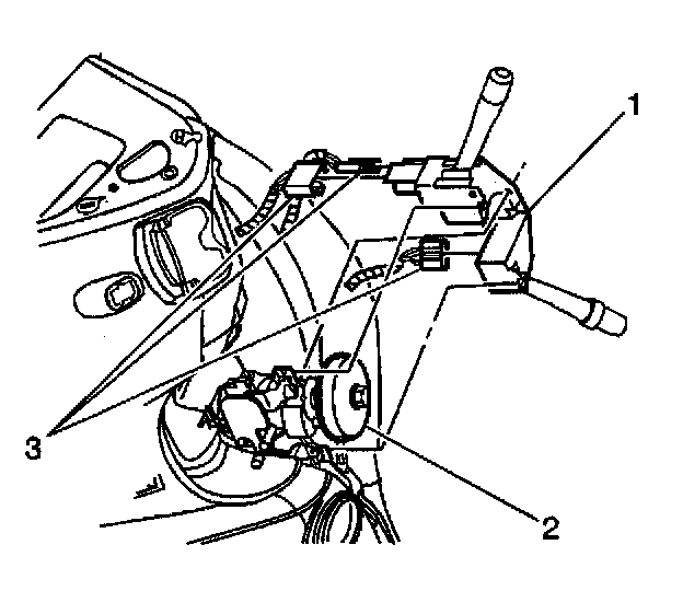 5. Disconnect the electrical connectors (3) from the multifunction switch (1).