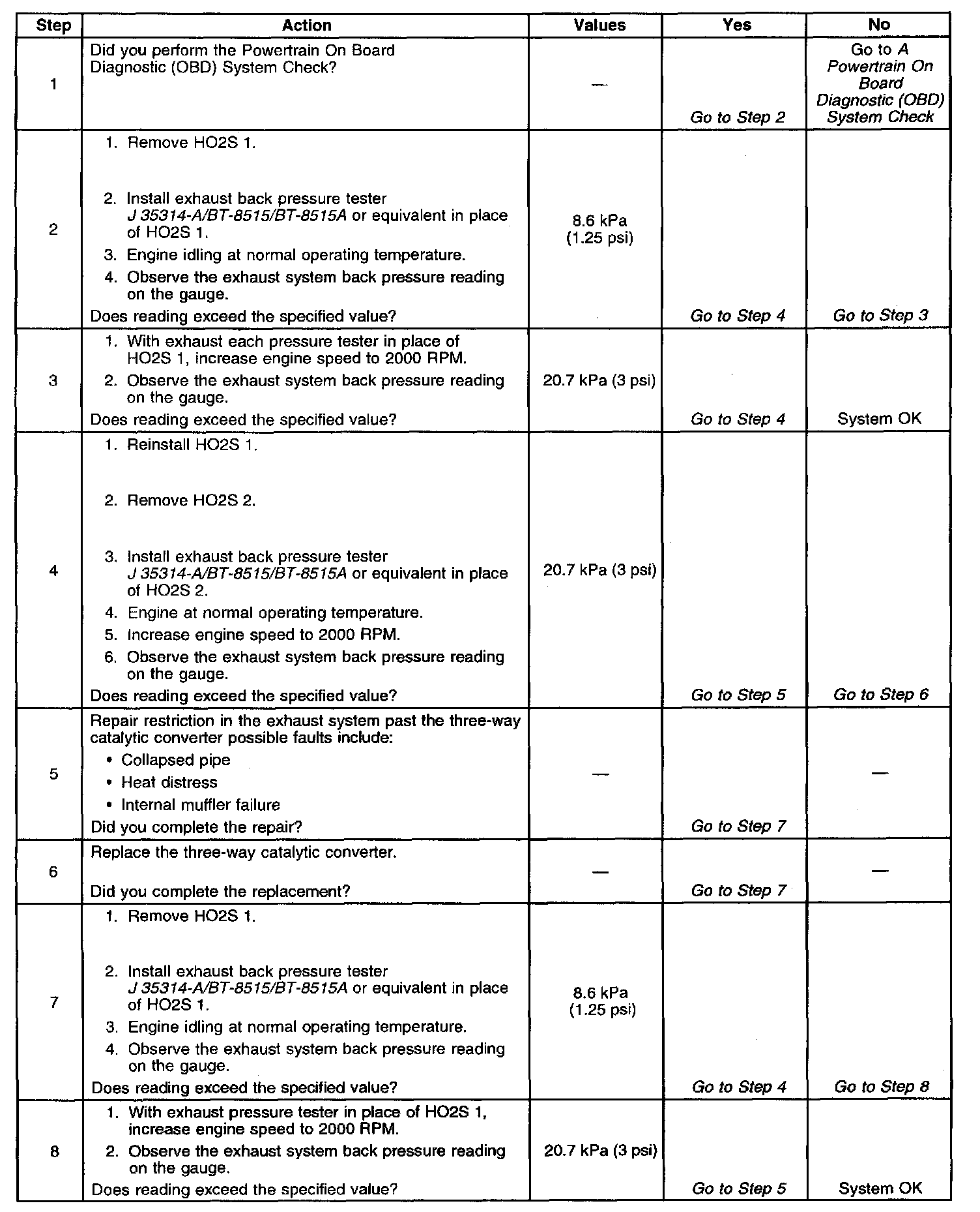 Restricted Exhaust System Check: