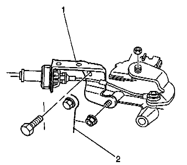 6. Install the cable at the transmission selector lever (2).