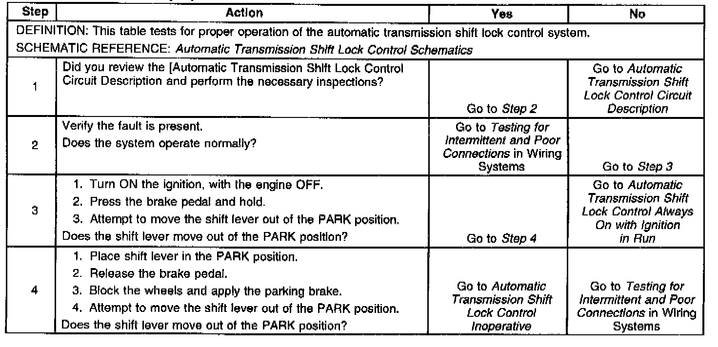 Important: Review the system operation in order to familiarize yourself with the system functions. Refer to Automatic Transmission Shift Lock Control Circuit Description.