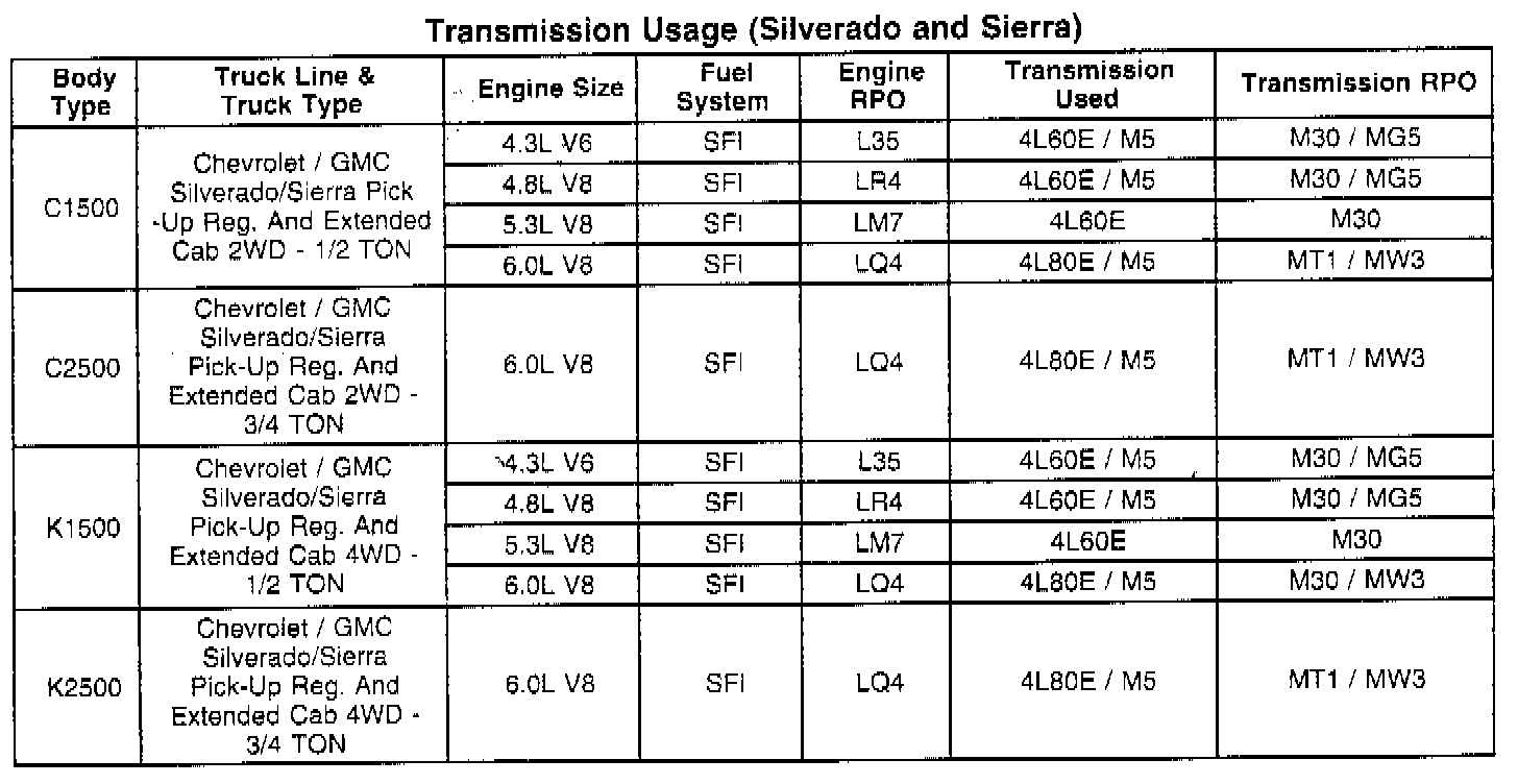 Transmission Usage (Silverado And Sierra):
