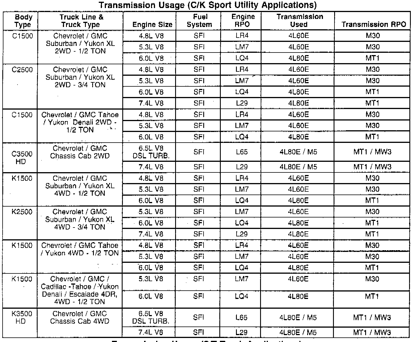 Transmission Usage (C/K Sport Utility Applications):