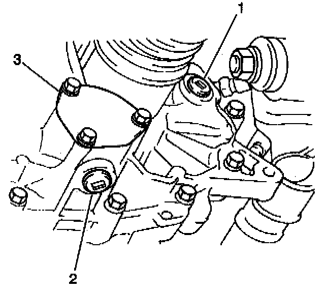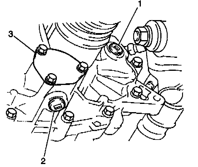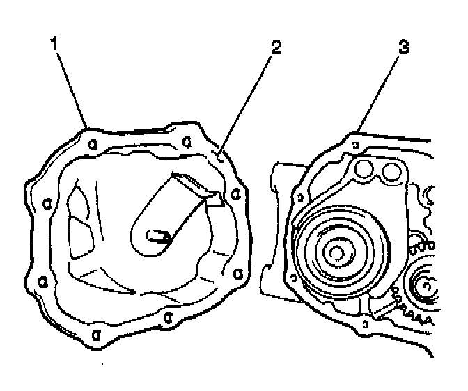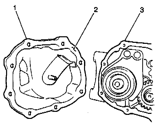 1. Apply GM P/N 12346240 or the equivalent to the mating surfaces of the transaxle side cover (2).