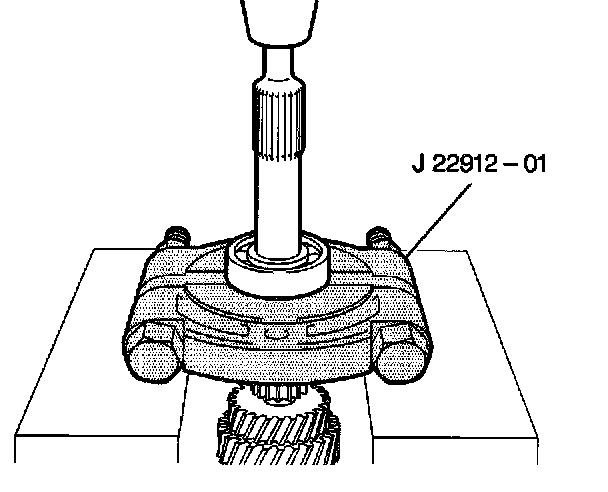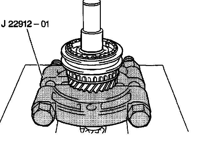 Important: In order to avoid placing undue stress on the gear teeth during removal, invert the J 22912-01 so that the flat side of the J 22912-01 is facing upward during disassembly of the input shaft assembly.