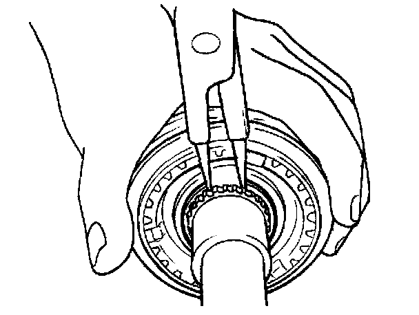 17. Use a feeler gage in order to measure the clearance between the input shaft fifth gear and the fifth speed synchronizer ring and gear.