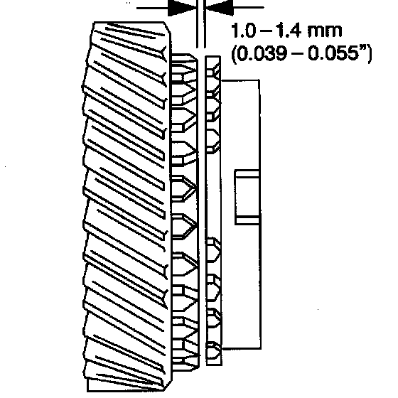 If the clearance is below 0.5 mm (0.019 inch), replace the high speed synchronizer ring and the input shaft third gear.