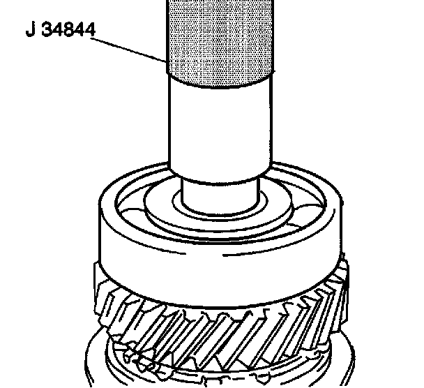 9. Use the J 34844 and a press arbor in order to install the input shaft fourth gear and the left input shaft bearing simultaneously.