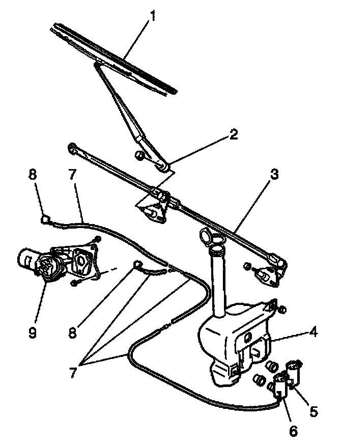 3. Connect the washer hoses (7).