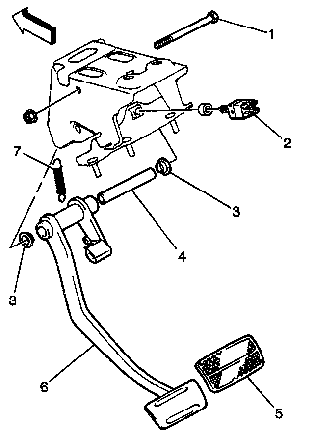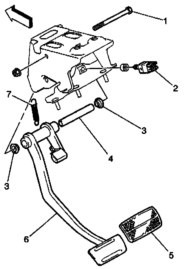 2. Remove the pedal spring (7).