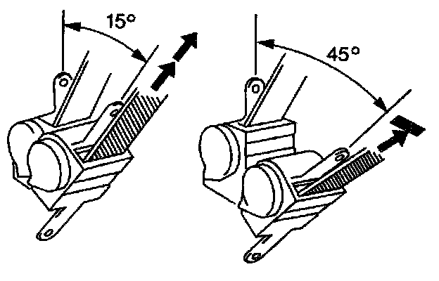 4.3. Ensure that the seat belt webbing can be pulled from the retractor at an inclination of 15 degrees or less and cannot be pulled from the retractor at an inclination of 45 degrees or more.