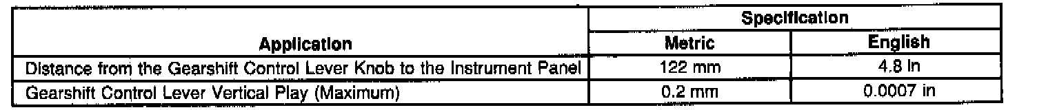 Gearshift Control Lever Specifications