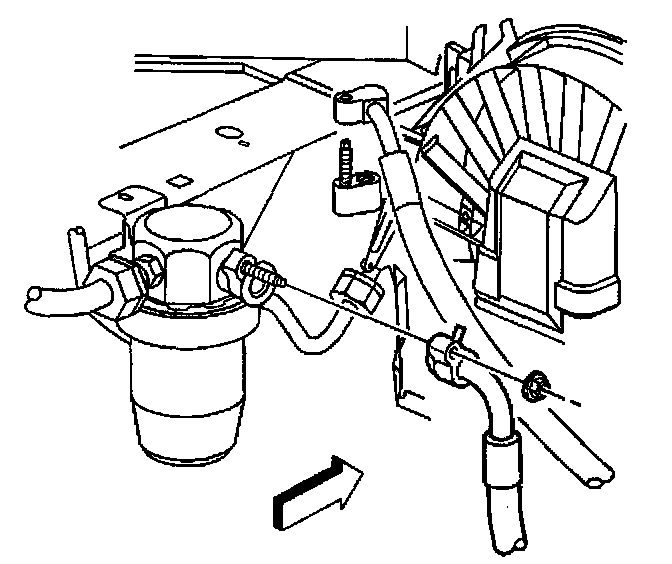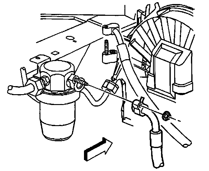 6. Remove the compressor hose nut from the accumulator and position the compressor hose aside.