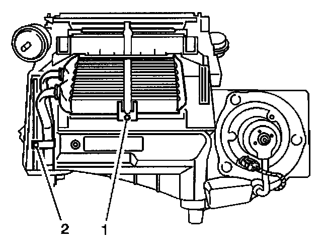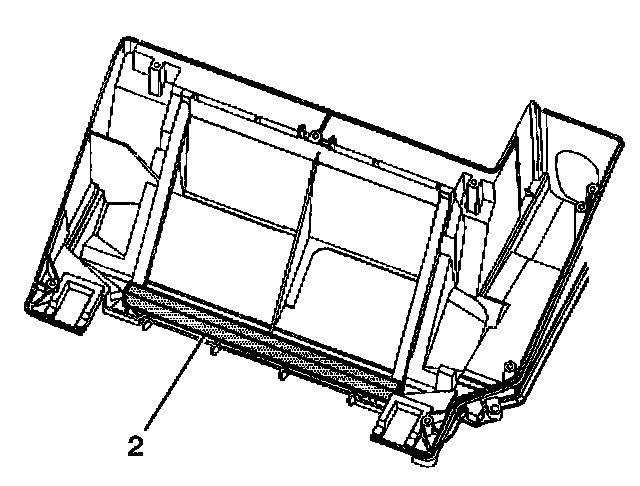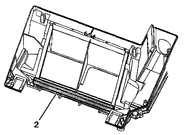 2. Install the heater core upper seal (2) to the HVAC lower case.