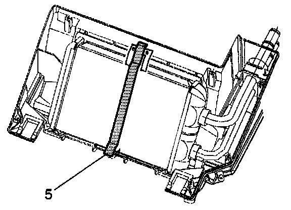 13. Remove and discard the heater core outer seal (5) from the heater core.