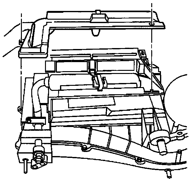 1. Install the heater core side seals (1) to the HVAC lower case.