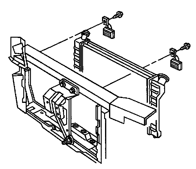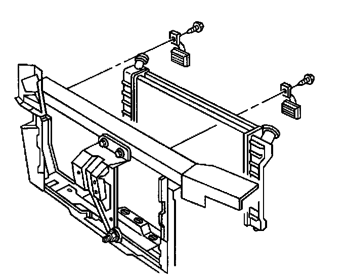 5. Remove the upper radiator brackets and bolts.