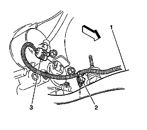 7. Disconnect the wheel speed sensor electrical connector (3).
