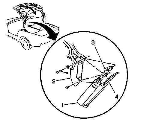 Open the rear compartment lid and remove the trim from the left rear side compartment. Refer to Cargo Area Side Trim Panel Replacement.