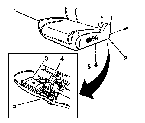 4. Remove the screws from the power seat switch (3), and remove the power seat switch from the recliner trim cover (2).