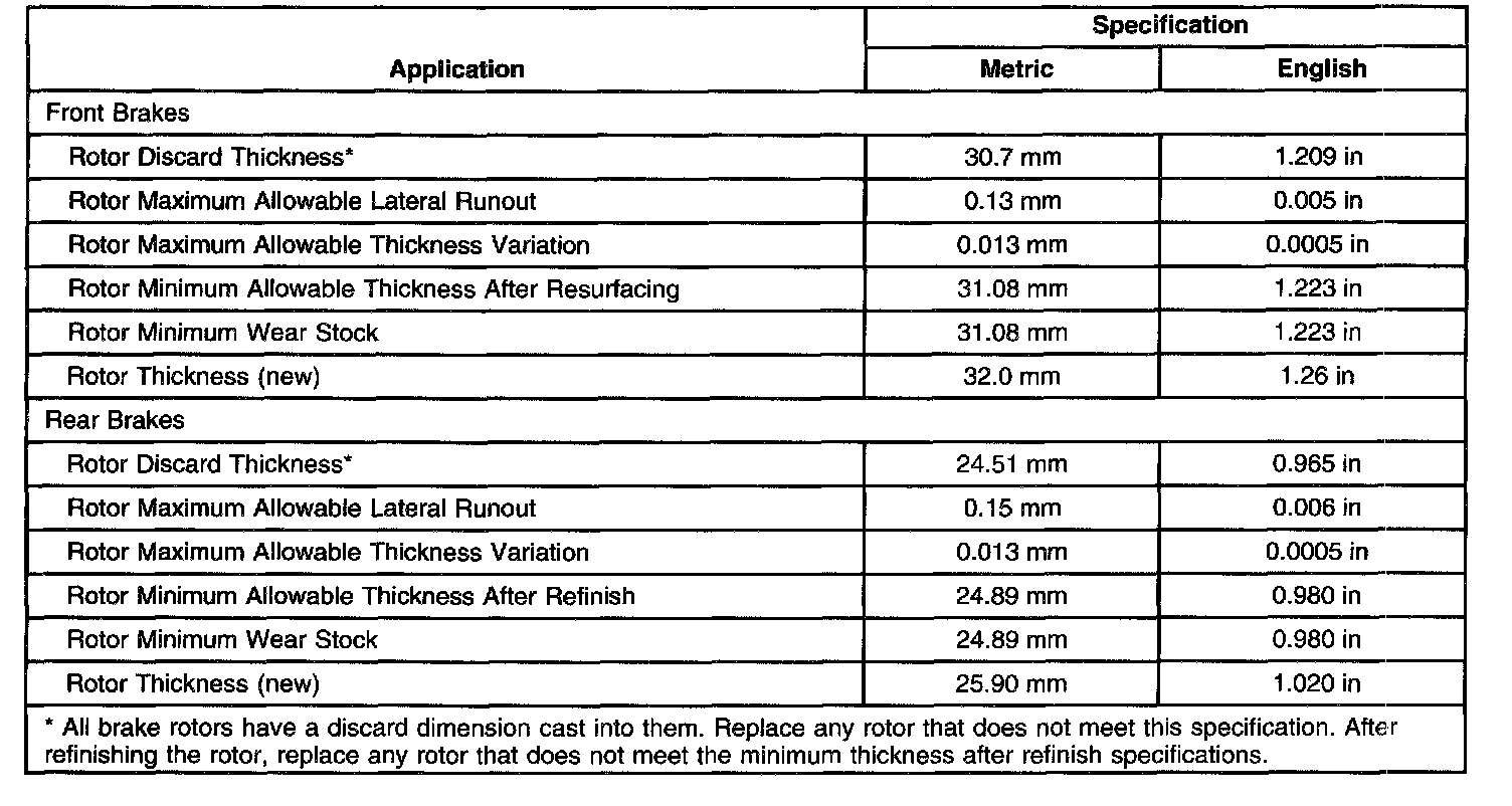 Disc Brake Component Specifications