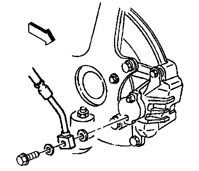 6. Remove the brake caliper inlet fitting bolt from the caliper.