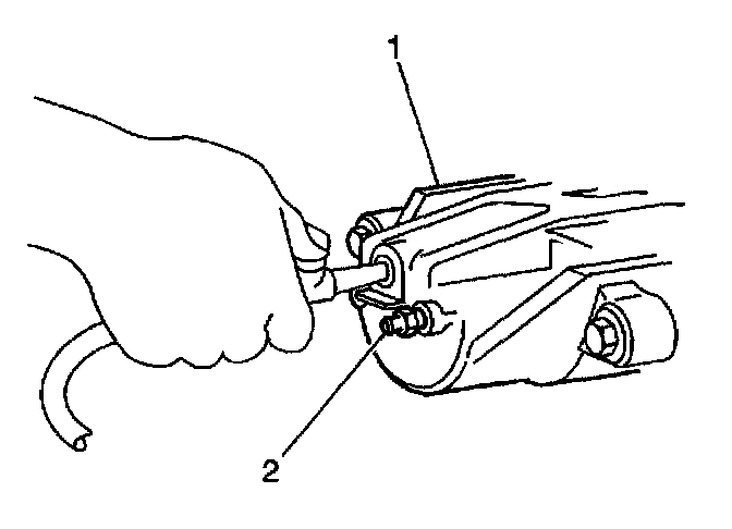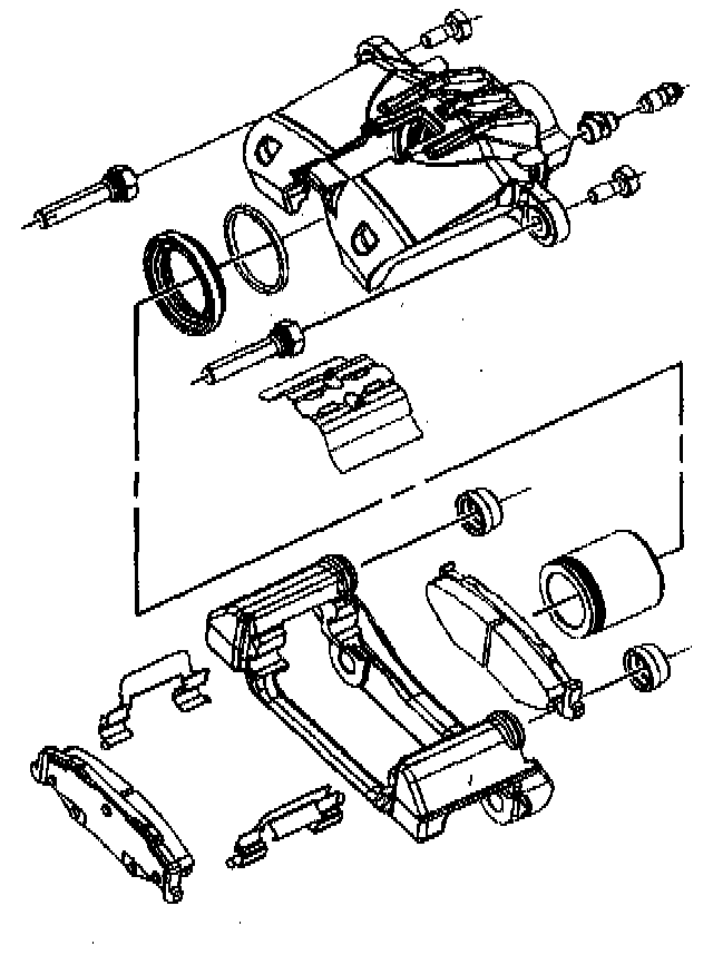 12. Blow out all passages in the brake caliper housing and the brake caliper bleeder valve.