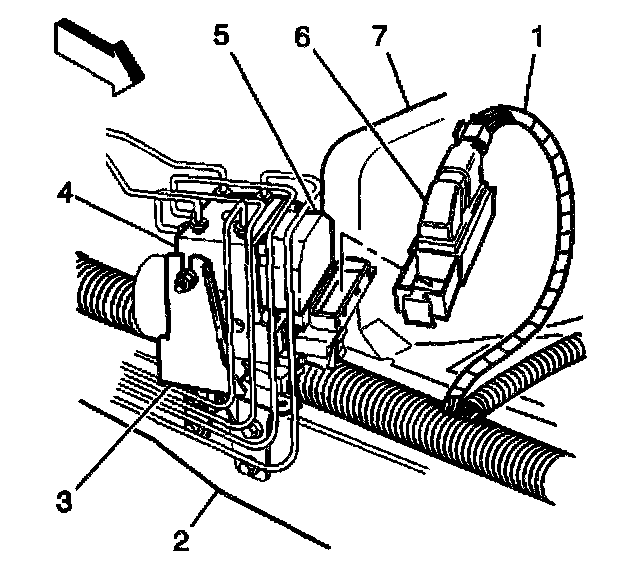 3. Disconnect the EBCM harness connector (6).