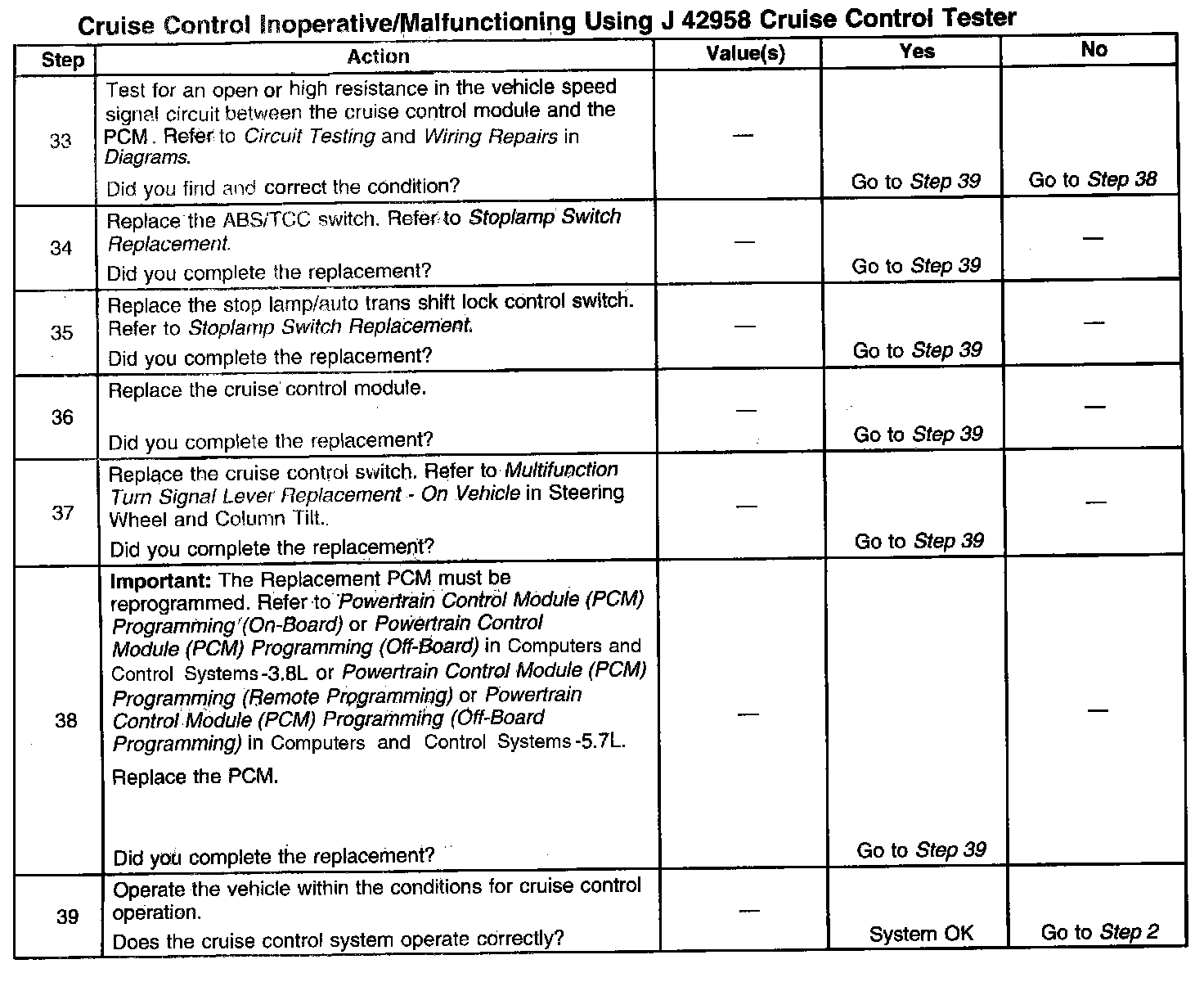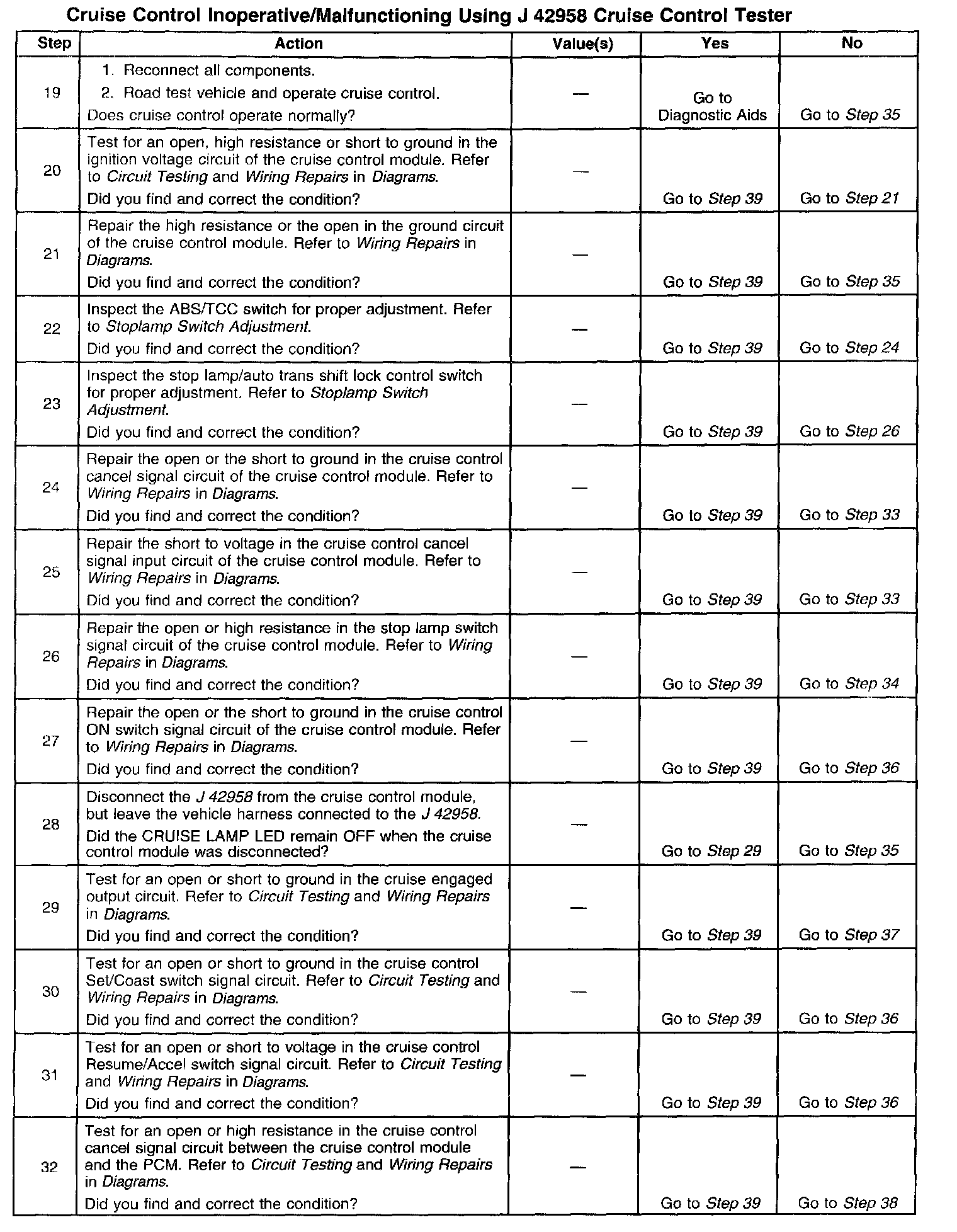 Cruise Control Inoperative/Malfunctioning Using J 42958 Cruise Control Tester