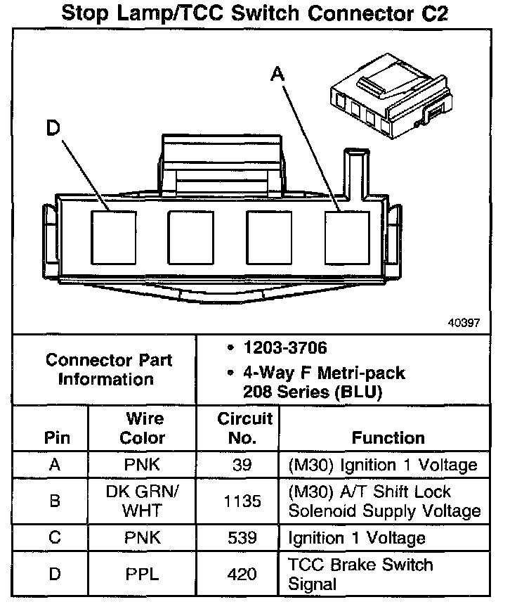Stop Lamp/TCC Switch Connector C2