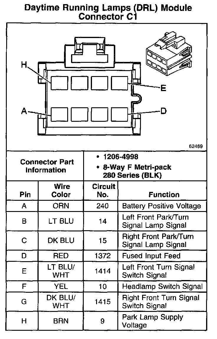 Daytime Running Lamps (DRL) Module Connector C1: