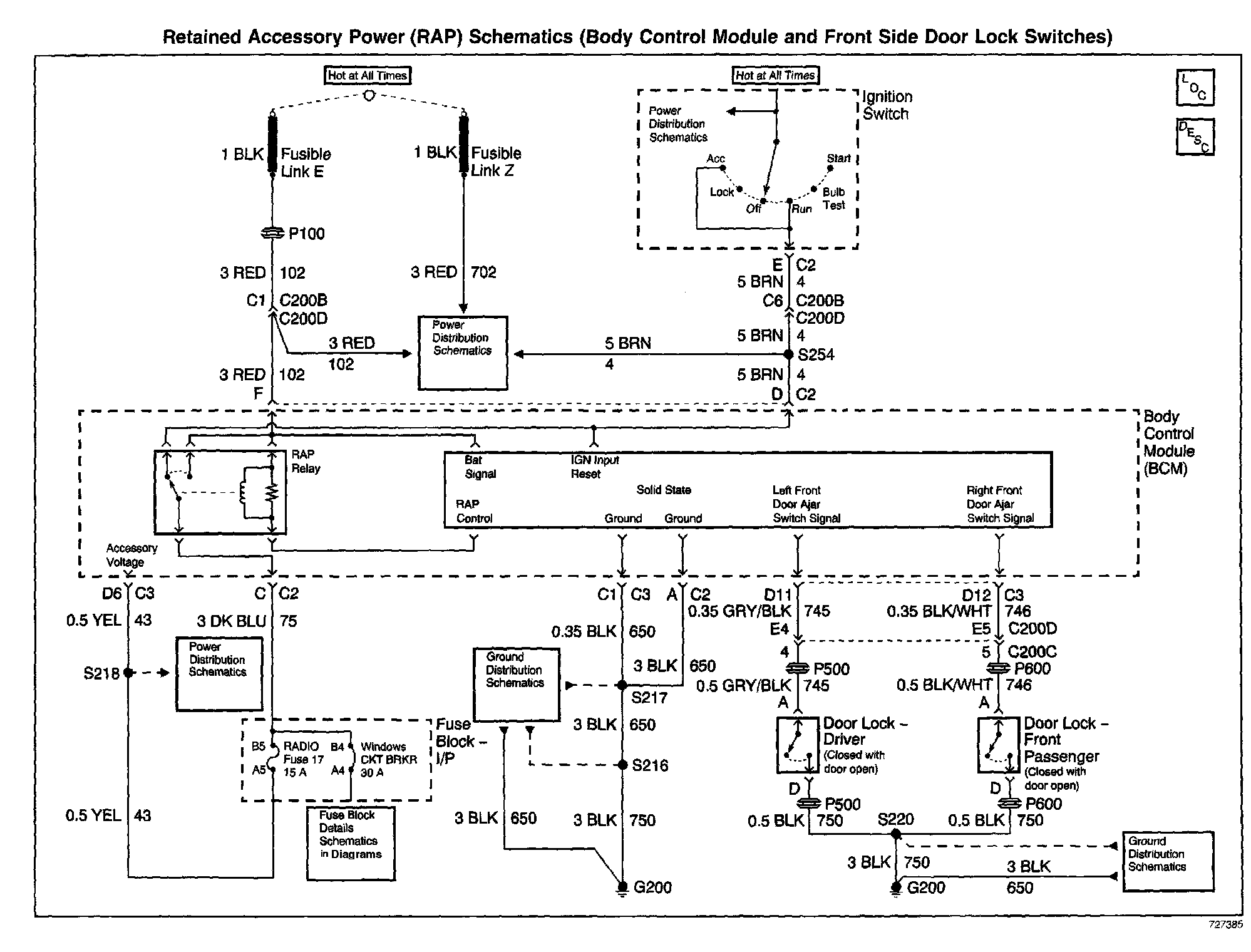 Retained Accessory Power (RAP) Schematics: Body Control Module And Front Side Door Lock Switches: