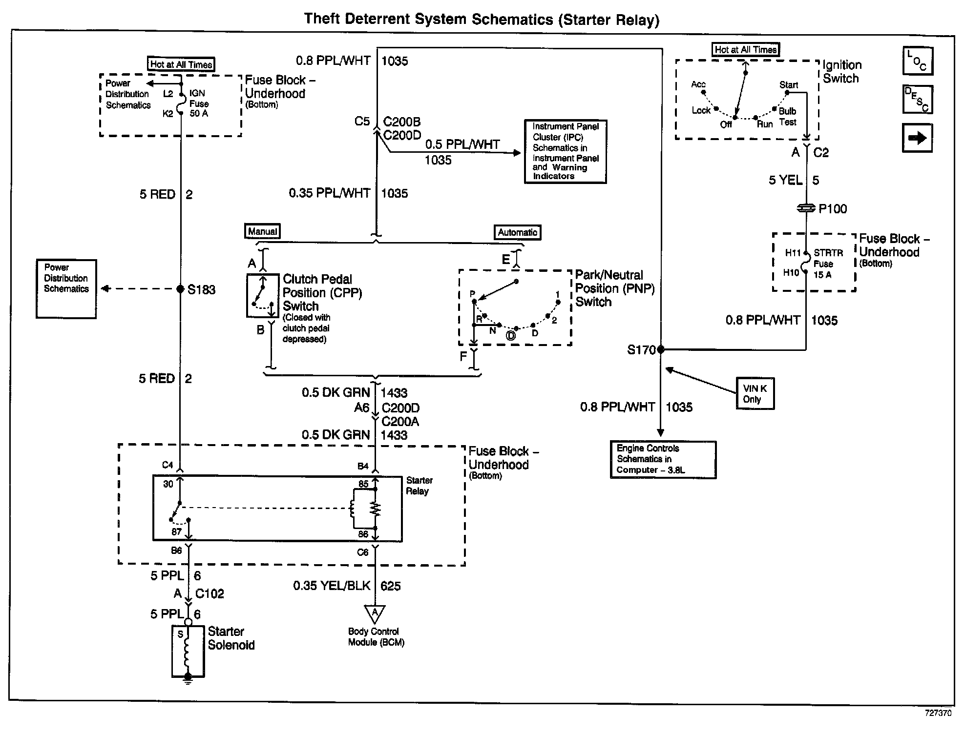 Theft Deterrent System Schematics: Starter Relay: