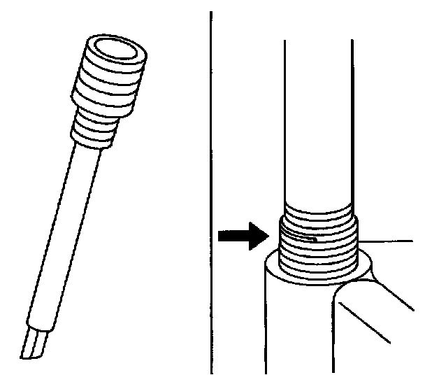 8. Screw the thread insert onto the mandrel of the thread insert installer. Engage the tang of the thread insert onto the end of the mandrel.
